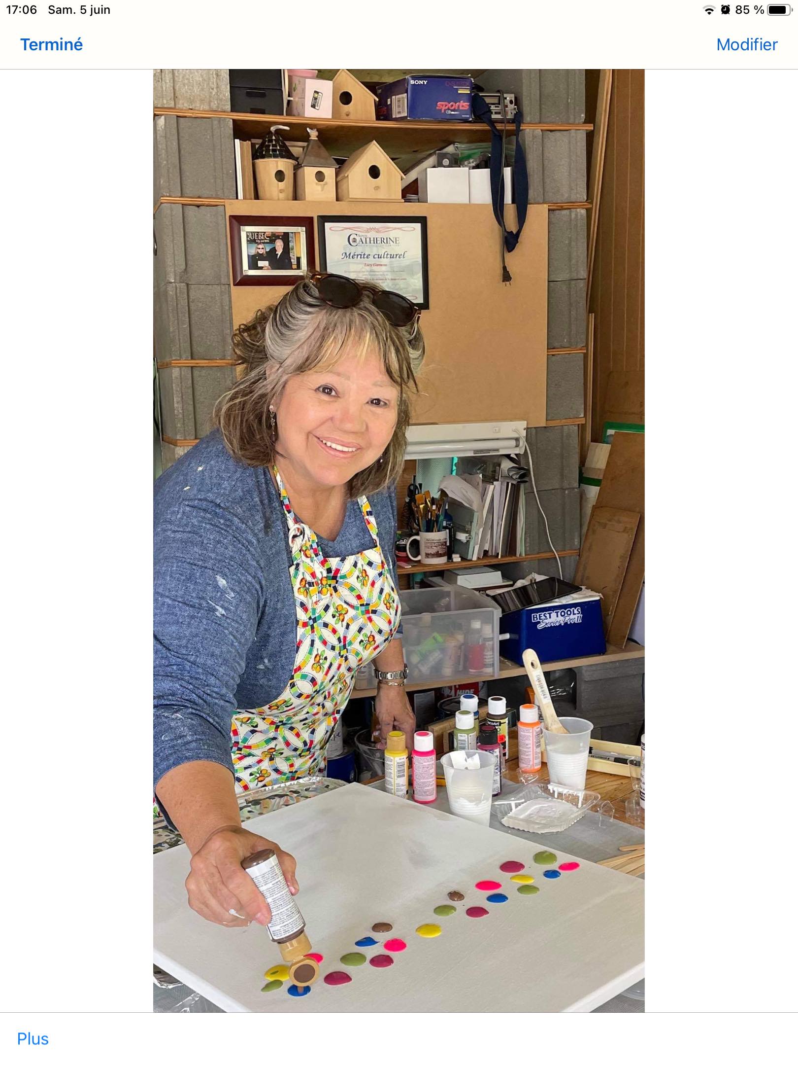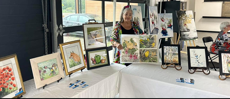 Au fil des ans, elle a exposé ses oeuvres à différents endroits, sur invitations d’élus municipaux de la région ou dans le cadre d’événements culturels. Depuis 2008, elle assiste au Salon Expo-Cadeaux organisé par la Corporation des artistes et artisans de la Jacques-Cartier. En tant que présidente de l’organisation, elle a aussi coordonné quelques éditions de l’événement.